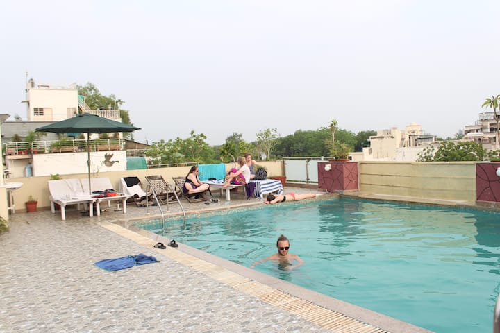 นี่เป็นหนึ่งในที่พักไม่กี่แห่งของย่านนี้ที่มีสระว่ายน้ำ