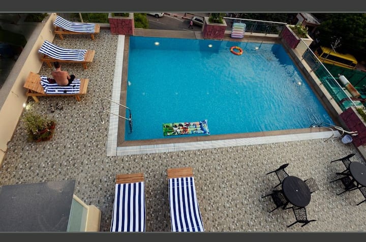 นี่เป็นหนึ่งในที่พักไม่กี่แห่งของย่านนี้ที่มีสระว่ายน้ำ