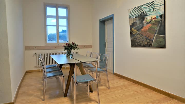 ในอดีตที่พักล่าสัตว์ของพระเจ้าหลุยส์ที่ 9 แห่ง Hesse-Darmstadt (1719 -1790 ผู้ก่อตั้งเมือง Pirmasens) คุณเป็นครอบครัวหรือกลุ่มไม่เกิน 12 คน (บวกกับทารก) จะได้สัมผัสกับความรู้สึกพิเศษของการใช้ชีวิต: ใกล้ชิดธรรมชาติและในขณะเดียวกันก็สะดวกสบายในห้องประวัติศาสตร์ขนาดใหญ่จากยุคบาโรกตอนปลาย ที่พักวันหยุดของคุณเป็นอาคารที่ลงประกาศและเป็นจุดเริ่มต้นที่เหมาะสำหรับการสำรวจโดยการเดิน ขี่ลา จักรยาน รถจักรยานยนต์ หรือรถยนต์ไปยังสภาพแวดล้อมที่สวยงามโดยรอบทันที อนุสรณ์ชีวมณฑลทั้งหมดของป่าพาลาทิเนต-วอสจ์ดูนอร์ด และอื่น ๆ