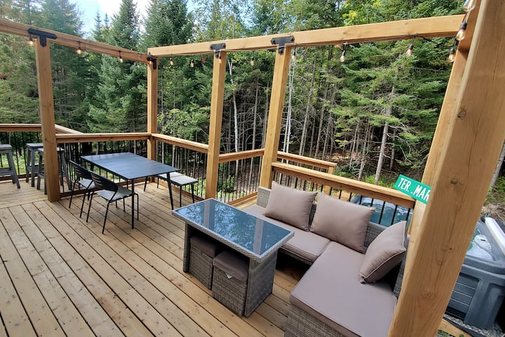 - บ้านพักตากอากาศที่มีที่นั่งกลางแจ้งใน Laurentides