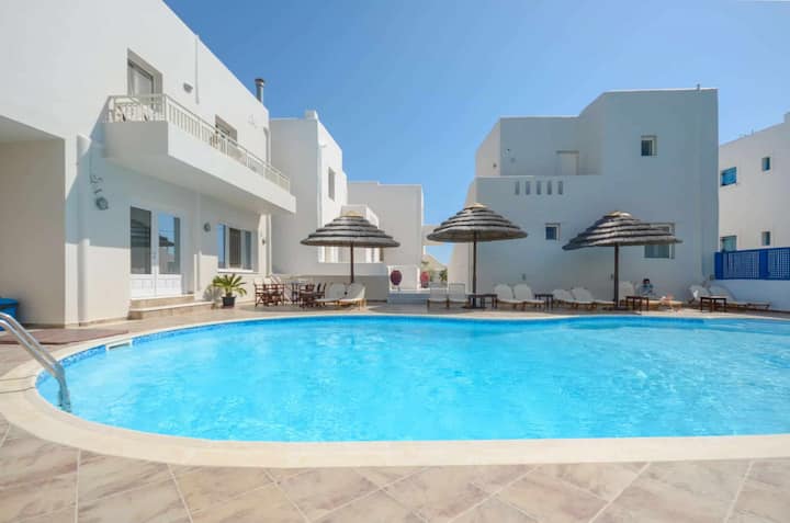 นี่เป็นหนึ่งในที่พักไม่กี่แห่งของย่านนี้ที่มีสระว่ายน้ำ