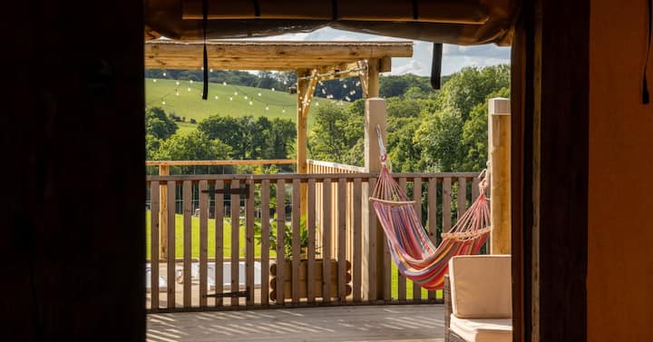 สวรรค์แกลมปิ้งในชนบทที่แตกต่าง! ซาฟารีลอดจ์ 'โร' ที่ทำจากไม้และผ้าใบของเราได้รับประโยชน์จากตำแหน่งที่สูงขึ้นภายในพื้นที่ 15 เอเคอร์ มองเห็นสวนกวางซึ่งถูกปิดบังด้วยป่าและรั้ว นอนได้ 6 คน (ผู้ใหญ่สูงสุด 4 คน) ห้องนอน 2 ห้องทั้งสองห้องมีเตียงคิงไซส์และเตียงเดี่ยวสบายๆ 2 เตียง มีอ่างจากุซซี่แบบจม 2 อ่าง รถกอล์ฟบักกี้ระหว่างเข้าพัก เพื่อขับไปและกลับจากที่จอดรถและที่พักระหว่างเข้าพัก
