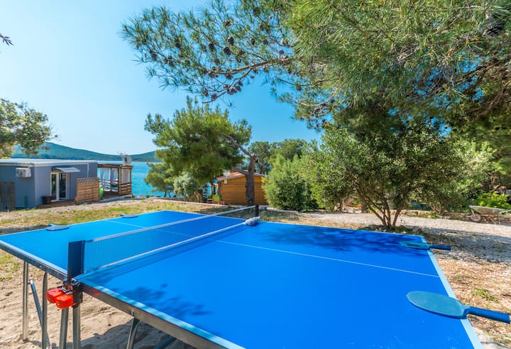 เราให้บริการบังกะโล 2 ห้องนอน (1) พร้อมระเบียงมีหลังคาพร้อมวิวทะเลและใช้สระว่ายน้ำรวม บังกะโลตั้งอยู่ในแคมป์บนชายฝั่งทางใต้ของเกาะ Pašman ในอ่าว Soline ข้ามอุทยานแห่งชาติเกาะโคราช มีบังกะโล 4 หลังในแคมป์ทั้งหมดนี้ครับ ยูนิตนี้ไม่ได้อยู่ข้างบริเวณสระว่ายน้ำ - สำหรับตำแหน่งที่แน่นอนของที่พักโปรดตรวจสอบรูปถ่าย หากต้องการไปแคมป์ต้องนั่งเรือข้ามฟากไปยังท่าเรือ Tkon (เกาะ Pašman) หรือไปยังท่าเรือเฟอร์รี่ Preko (เกาะ Ugljan) เมื่อถึงท่าเรือ Tkon คุณจะต้องขับรถไปที่แคมป์ โปรดทราบ: ไม่มีรถโดยสารสาธารณะไปยังค่ายพักแรมและไม่สามารถให้บริการรถรับส่งบนเกาะได้ (หมายเหตุ: เกาะ Pašman และ Ugljan เชื่อมต่อกับสะพาน) บังกะโลมีห้องนอน 2 ห้องมีเตียงคู่แต่ละห้องห้องครัวพร้อมอุปกรณ์ห้องนั่งเล่นพร้อมเตียงโซฟาเดี่ยวห้องน้ำพร้อมฝักบัวและโถสุขภัณฑ์ระเบียงมีหลังคามองเห็นวิวทะเลและวิวบนอุทยานแห่งชาติหมู่เกาะโคราชพร้อมพื้นที่รับประทานอาหารกลางแจ้ง ผู้เข้าพักสามารถใช้สระว่ายน้ำรวมและลานอาบแดดที่ใช้ร่วมกันได้ คุณสามารถจัดเตรียมอาหารเช้าทุกวัน (คิดค่าบริการเพิ่มเติม) ถัดจากบังกะโลมีสนามเด็กเล่น มีที่จอดรถส่วนตัวฟรี ที่อาคารร้านอาหารมีสิ่งอำนวยความสะดวกบาร์บีคิวสำหรับผู้เข้าพักสามารถใช้งานได้โดยไม่มีค่าใช้จ่ายผู้เข้าพัก มีสิ่งอำนวยความสะดวกในการซักรีดในอาคารร้านอาหาร มีค่าใช้จ่ายเพิ่มเติมในการใช้สิ่งอำนวยความสะดวกในการซักรีด หาดกรวดตั้งอยู่ห่างจากบังกะโล 150 ม.
