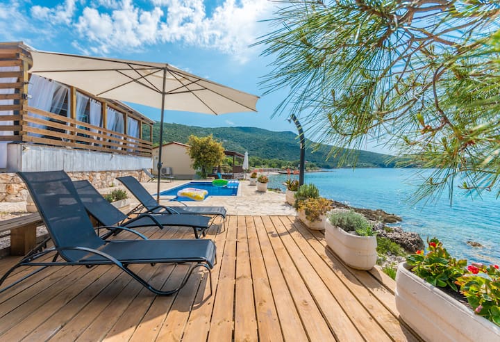 บังกะโลพร้อมสระว่ายน้ำรวม "Dream of Kornati" ตั้งอยู่ในแคมป์เล็กๆที่อบอุ่นทางตอนใต้ของเกาะ Pašman ที่พักนี้มีทุกอย่างที่คุณจินตนาการได้สำหรับการพักผ่อนที่สมบูรณ์แบบ: บังกะโลสองห้องนอนพร้อมระเบียงหลังคากว้างขวางพร้อมวิวทะเลที่งดงามที่สุดและวิวบนเกาะโคราชร้านอาหาร "Runjka" อยู่ในสถานที่ทะเลอยู่ห่างออกไปเพียงไม่กี่ก้าว นี่เป็นสถานที่ที่สมบูรณ์แบบสำหรับวันหยุดฤดูร้อนที่ดีที่สุดในชีวิตของคุณด้วยการผจญภัยและรสชาติโรบินสัน