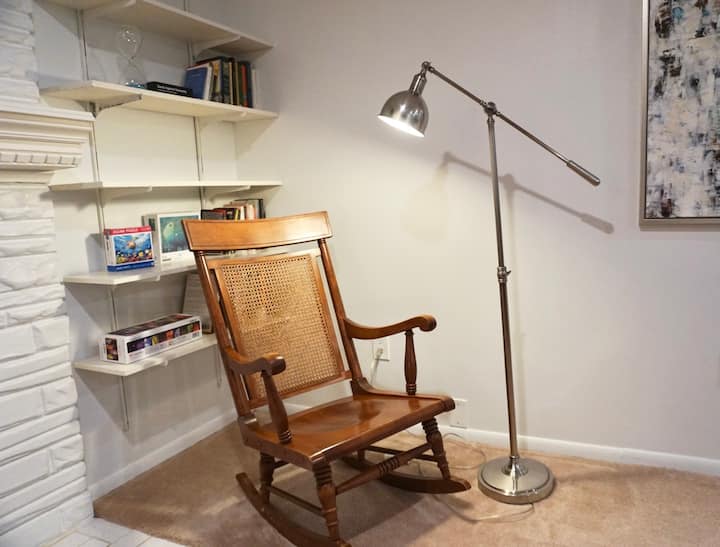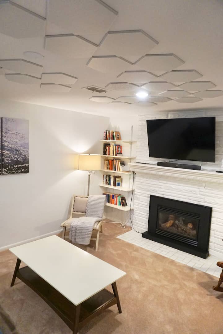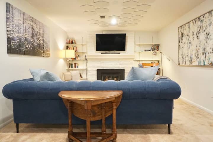 เมื่อเข้ามา คุณจะได้รับการต้อนรับด้วยพื้นที่ขนาดใหญ่ที่ลงไปยังห้องพักที่กว้างขวาง (1,500 ตารางฟุต) และสว่างไสว เมื่อคุณไปถึงด้านล่างของบันไดพื้นที่รับประทานอาหาร (ที่นั่ง 6) จะอยู่ด้านหน้าโดยตรงทางด้านขวาเป็นห้องนั่งเล่นที่อบอุ่นและน่าอยู่พร้อมสมาร์ททีวีขนาด 50 นิ้วด้านซ้ายเป็นห้องครัวที่สร้างขึ้นใหม่และมีอุปกรณ์ครบครันและด้านในสุดของห้องครัวชิดหน้าต่างทางออกขนาด 48 นิ้วเป็นพื้นที่ทำงานที่กว้างขวาง - Wi-Fi ของเราเร็วและเชื่อถือได้ทั่วทั้งบ้าน ทันทีทางด้านขวาของบันไดเป็นห้องนอนแรกที่มีประตูอยู่ติดกับห้องน้ำทางด้านซ้ายของบันไดเป็นทางเดินที่นำไปสู่เครื่องซักผ้าและเครื่องอบผ้าในห้องเอนกประสงค์ห้องนอนที่สองและโดยตรงที่ปลายโถงทางเดินเป็นประตูไปยังห้องน้ำถัดจากห้องนอนที่สอง ห้องนอนแต่ละห้องมีเตียงควีนไซส์ ฉันหวังว่าที่พักจะทำให้คุณรู้สึกเหมือนอยู่บ้านหลังที่สอง