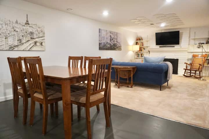ที่พักนี้อยู่ในชั้นใต้ดินของเราแต่ได้รับแสงที่ดีพร้อมหน้าต่างทางออกขนาดใหญ่ "บ้านทั้งหลัง" เป็นรายละเอียดที่เหมาะสมที่สุดที่มีอยู่ใน Airbnb ในปัจจุบัน
