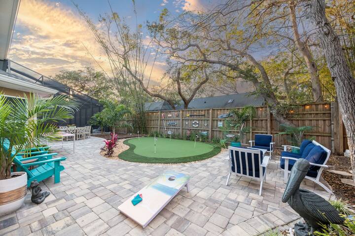 กลางแจ้ง -- สนามหลังบ้านมีพื้นที่มากมายให้เพลิดเพลินกับทั้งกลุ่มของคุณ! โต๊ะโพลีวูด 8 ที่นั่งลานบ้านมีสไตล์ 5 ที่นั่งและที่ตั้งหลุมก่อไฟ 8 ที่นั่ง แม้ว่าคุณอาจจะไม่ได้นั่งตลอดเวลาในสระว่ายน้ำอุ่น+สปา แต่สนามกอล์ฟขนาดเล็ก การขว้างขวาน ปิงปอง คอร์นโฮล และเกม 4 in Row ขนาดเท่าตัวจะรอให้คุณมาเล่น!