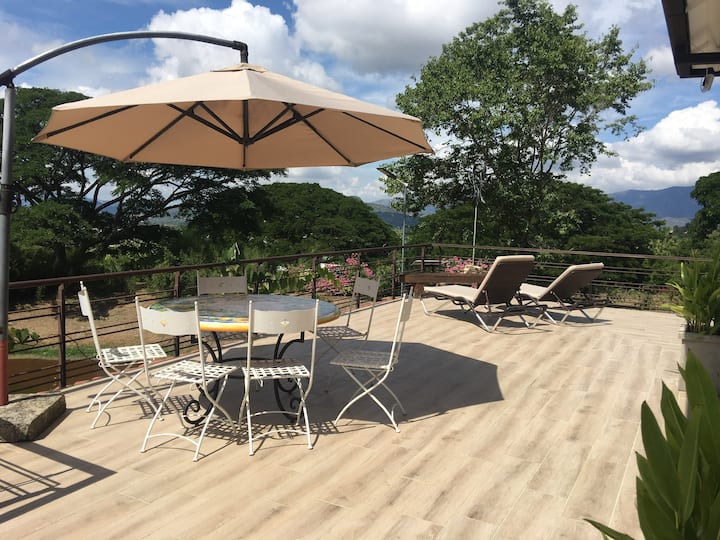 - บ้านพักตากอากาศที่มีที่นั่งกลางแจ้งใน Anapoima