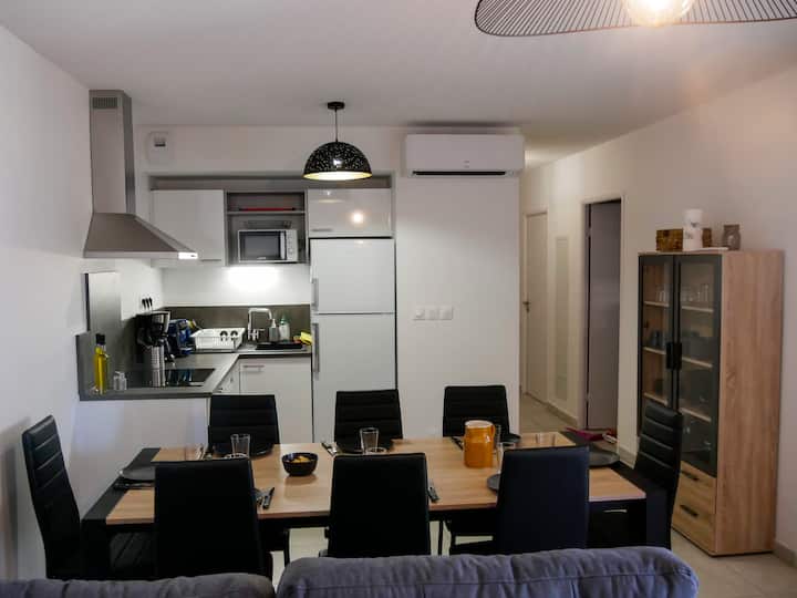 คุณจะพบร้านค้าทั้งหมดของใจกลาง Vias Plage โดยใช้เวลาเดิน 7 นาที: ซูเปอร์มาร์เก็ตเบเกอรี่ร้านอาหารบาร์ธารน้ำแข็ง...
