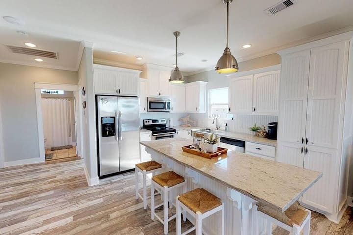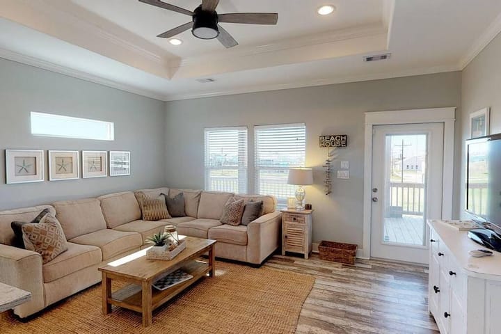 - บ้านพักตากอากาศที่มีที่นั่งกลางแจ้งใน Bolivar Peninsula