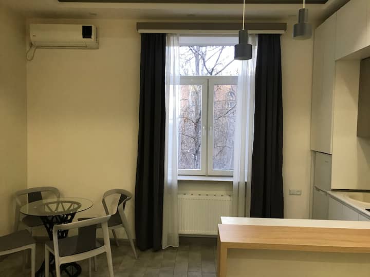 สตูดิโอห้องเดียวที่กว้างขวางและสว่างไสวในใจกลางเมือง