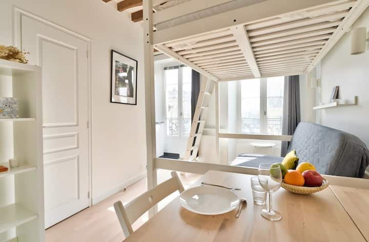 สตูดิโอชั้นลอยที่มีสไตล์ในใจกลางปารีสชั้น 3