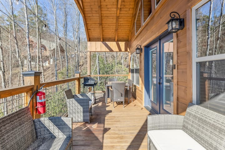 เคบินสุดหรูแห่งนี้มีความสะดวกสบายเหมือนอยู่บ้านและอื่นๆอีกมากมาย! คุณจะชอบการตกแต่งที่ทันสมัยเช่นเคาน์เตอร์หินแกรนิตเตาผิงหินซ้อนผนังจั่วกระจกสูงจากพื้นจรดเพดานและทีวีความละเอียดสูงขนาดใหญ่ในแต่ละห้อง เคบินที่เงียบสงบแห่งนี้เป็นเจ้าของแต่ได้รับการจัดการอย่างมืออาชีพโดย Summit Cabin Rentals ตั้งอยู่ใน Shagbark Resort และตั้งอยู่บนสันเขาที่มองเห็นหุบเขาที่เงียบสงบในเชิงเขา Great Smoky Mountains