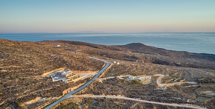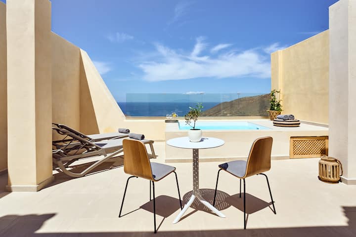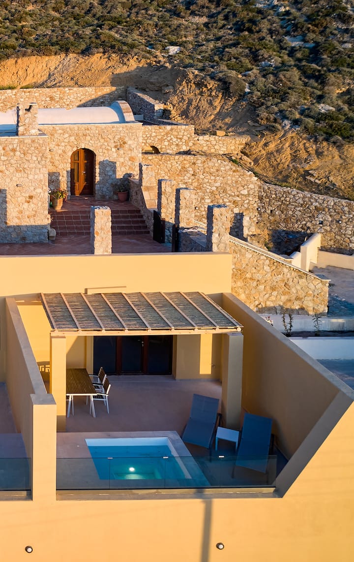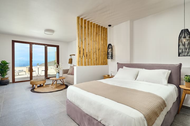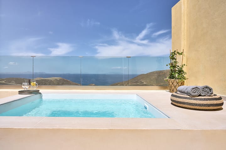 ห้องสวีท 1 ห้องนอนพร้อมสระว่ายน้ำและวิวทะเลและพระอาทิตย์ตกของ Anafi Felicity