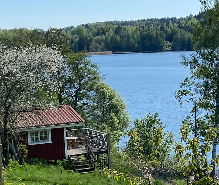 บ้านไม้สำหรับฤดูร้อนพร้อมระเบียงริมทะเลสาบ