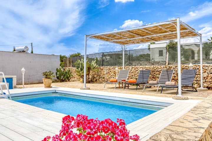 บ้านพักตากอากาศของเรากำลังรอคุณอยู่พร้อมสระว่ายน้ำส่วนตัวสวนสวยและหาดทรายที่อยู่ห่างออกไปไม่กี่ร้อยเมตร! < br > ที่นี่คุณสามารถผ่อนคลายและลืมชีวิตประจำวัน บ้านพักตากอากาศเหมาะสำหรับครอบครัวโดยเฉพาะอย่างยิ่งกับเด็กหรือกลุ่มเพื่อน มีห้องพักขนาดใหญ่สองห้องและเตียงโซฟาในห้องนั่งเล่น ห้องน้ำสองห้องพร้อมฝักบัว (ห้องน้ำห้องหนึ่งสามารถเข้าถึงได้จากด้านนอกของบ้านเท่านั้น) พื้นที่นั่งเล่นขนาดใหญ่พร้อมเครื่องปรับอากาศพร้อมห้องครัวแบบเปิดโล่งรวมถึงเตาอบ ระเบียงกลางแจ้งที่มีหลังคาและวิวทะเลบางส่วน และสวนขนาดใหญ่ที่มีพื้นที่กว้างขวางและพื้นที่บาร์บีคิวหินที่สวยงาม สระว่ายน้ำขนาดเล็ก (ประมาณ 5.50 x 2.50 เมตร ลึกประมาณ 1.25 เมตร) ให้ความเย็นและความสนุกสนานสำหรับทั้งครอบครัว บ้าน สระว่ายน้ำ และสวนเป็นส่วนตัวสำหรับการใช้งานสุดพิเศษของคุณบ้านพักแห่งนี้ตั้งอยู่ในเพสโคลูส เมืองเล็ก ๆ บนชายฝั่งไอโอเนียนของซาเลนโต หาดทรายอยู่ห่างออกไปไม่ถึง 1 กม. และสามารถเดินถึงได้ มีร้านค้าร้านอาหารและร้านกาแฟหลายแห่งในหมู่บ้านดังนั้นคุณจึงไม่จำเป็นต้องมีรถสำหรับชีวิตประจำวัน < br > กิจกรรมกีฬามากมายที่เป็นไปได้ในพื้นที่ (การปั่นจักรยานการเดินป่าการแล่นเรือใบการเช่าเรือการตกปลาฯลฯ) วิธีที่ดีที่สุดในการสำรวจถ้ำทะเลของปลายสุดทางใต้ของอาปูเลียคือการนั่งเรือจากซานตา มาเรีย ดี เลอูกา (นั่งรถ 15 นาที) สามารถเดินทางไปยังเมืองกัลลิโปลี กาลาตินา ออตรันโต เลชเช่ ที่มีใจกลางเมืองที่มีความสำคัญทางประวัติศาสตร์ได้ภายใน 25 -60 นาทีโดยรถยนต์