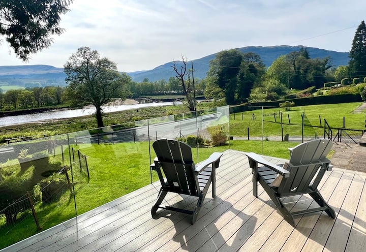 ห้องนอน 1: เตียงใหญ่พร้อมวิวแม่น้ำตู้เสื้อผ้าโต๊ะข้างเตียง