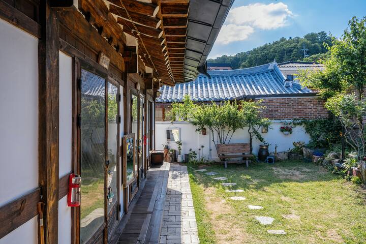 ความพิเศษของที่พัก: ตั้งอยู่ใจกลางหมู่บ้านฮันอกดาดฟ้าที่มีวิวดีห้องฮันอกหลากหลายประเภทอาหารเช้าสนามหญ้า