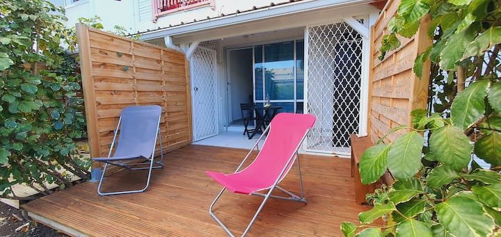 สตูดิโอที่สวยงามบนชั้นล่างของสวนในท่าเรือใกล้ชายหาด