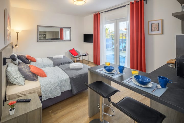 สตูดิโอสำหรับผู้ใหญ่เท่านั้น จักรยานฟรี สระว่ายน้ำรวม ชายหาด