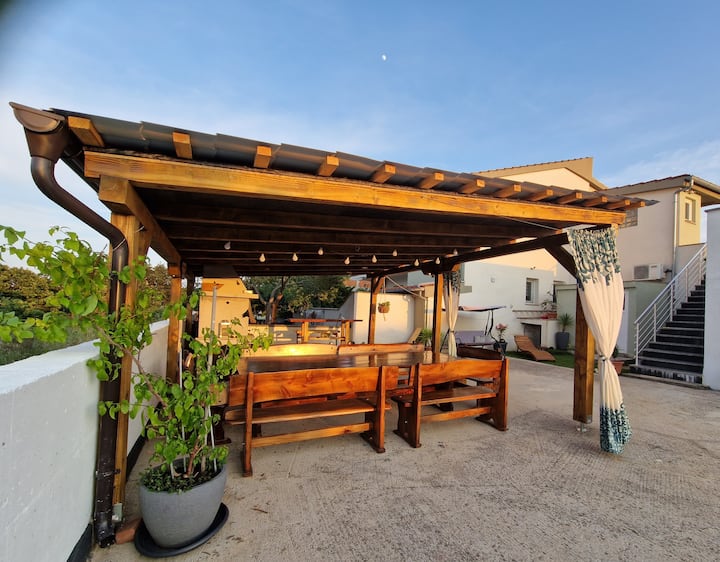 - บ้านพักตากอากาศที่มีที่นั่งกลางแจ้งใน Polača