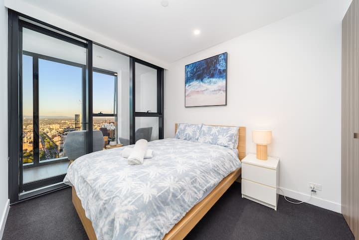 64F ซันไรส์สกายวิว เมลเบิร์น CBD 2 ห้องนอน 2 ห้องน้ำ ที่จอดรถฟรี