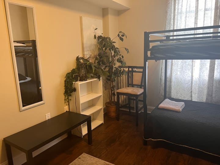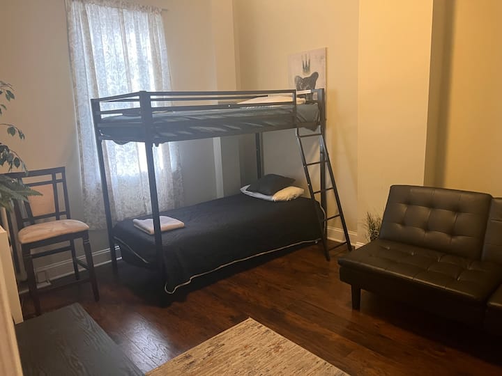 ห้องเตียงสองชั้นสว่างสดใสเหมาะสำหรับเพื่อน 2 คน
