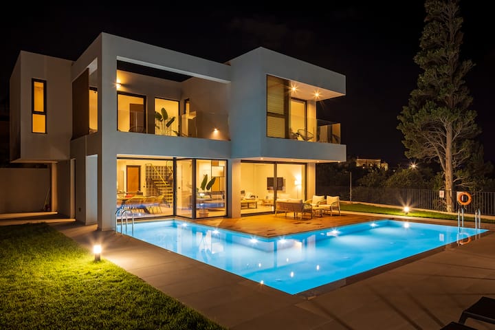 - ดาดฟ้าสระว่ายน้ำตั้งอยู่นอกห้องนั่งเล่นหลักโดยตรงพร้อมโซฟากลางแจ้งและเก้าอี้นวมที่สามารถนั่งได้ 5 คนเพื่อการพักผ่อนริมสระว่ายน้ำและตำแหน่งที่สมบูรณ์แบบในการชมพระอาทิตย์ตกดินในทะเล Cretan สีฟ้าการออกแบบสระว่ายน้ำที่ไม่เหมือนใครนี้ล้อมรอบวิลล่าด้วยความรู้สึกของการใช้ชีวิตริมน้ำ สระว่ายน้ำยังสามารถให้ความร้อนได้โดยมีค่าใช้จ่ายรายวันเพิ่มเติม