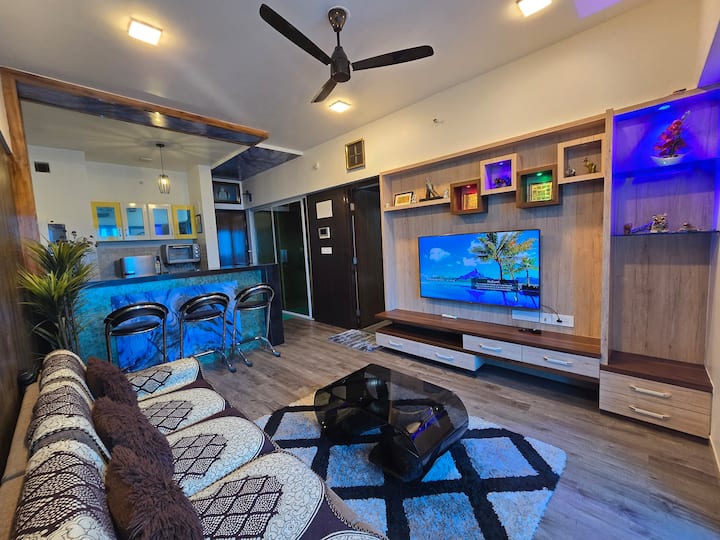 บ้านที่ตกแต่งใหม่ของเรามีสิ่งอำนวยความสะดวกที่ทันสมัยที่จำเป็นครบครัน ห้องครัวแบบเปิดโล่งและพื้นที่นั่งเล่น และห้องนอนหนึ่งห้องพร้อมห้องน้ำในตัว ห้องน้ำมีจากุซซี่ฟองอากาศขั้นสูง อพาร์ทเมนท์นี้รองรับได้สูงสุด 4 คนอย่างสะดวกสบาย