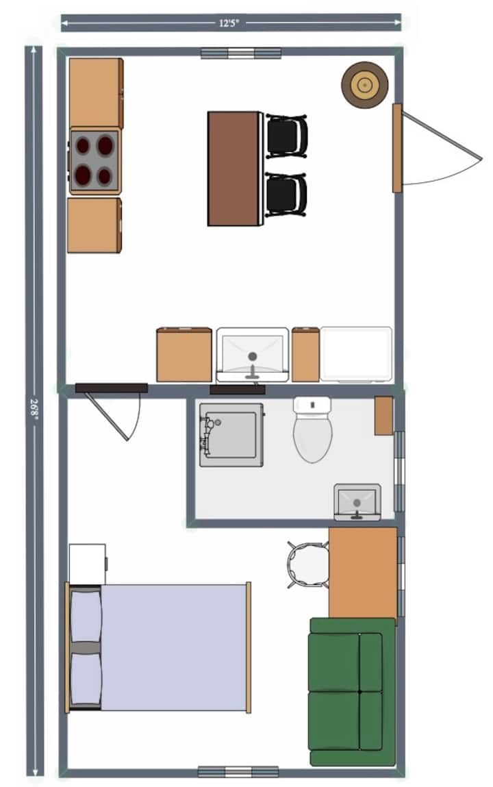 ห้องสวีทส่วนต่อเติมส่วนตัวสีสันสดใสพร้อมสนามหญ้าขนาดใหญ่