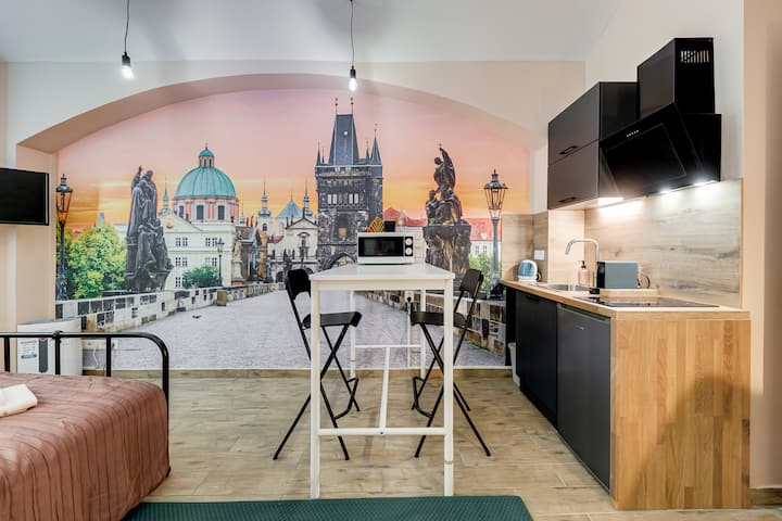 เฮ้ฉันอาศัยอยู่ที่ปรากและนี่คืออพาร์ทเมนท์ใหม่ล่าสุดของฉันและฉันหวังว่าการเข้าพักของคุณในปรากจะสะดวกสบายมาก