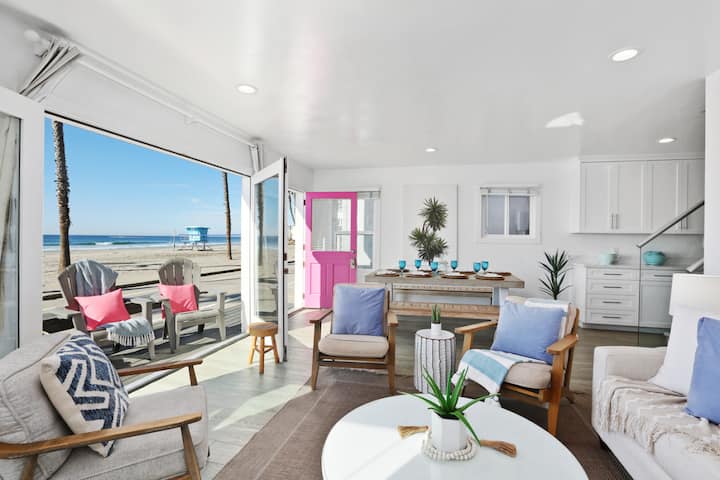 บ้านพักตากอากาศปิงค์ดอร์บีชเฮ้าส์เป็นหนึ่งในที่พักตากอากาศที่เป็นที่รักที่สุดของโอเชียนไซด์เพราะมีชายหาดอยู่ในสนามหลังบ้าน อย่าพลาดโอกาสสัมผัสบ้านริมทะเลสุดหรูที่มีทั้งแสงแดด การโต้คลื่น และเสน่ห์ของแคลิฟอร์เนียใต้