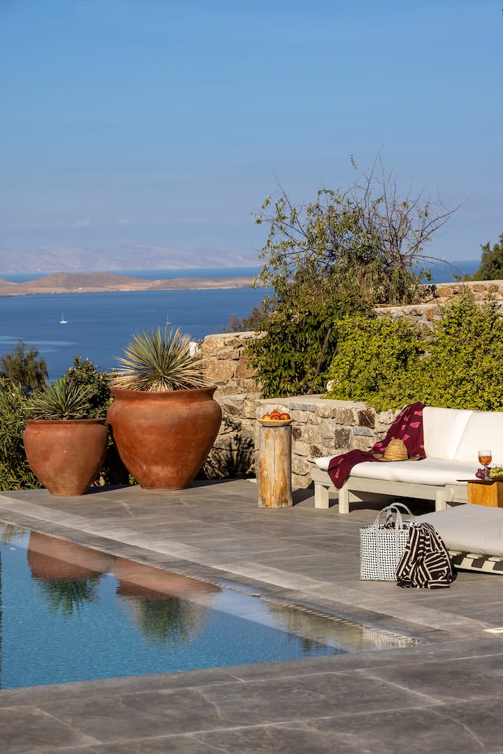 วิวพระอาทิตย์ขึ้นและพระอาทิตย์ตกที่น่าที่น่าทึ่งของ Villa Mykonian Ode