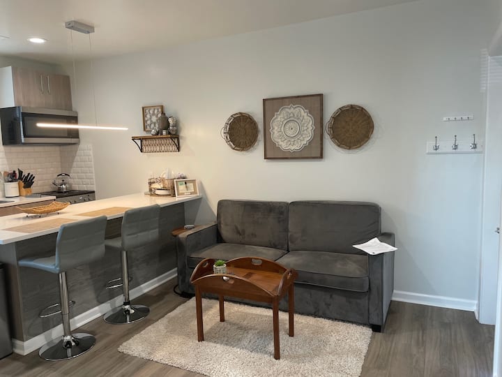 แฟลต 1 ห้องนอนทันสมัย 4 คน 2 เตียง ห้องครัวและลานบ้าน