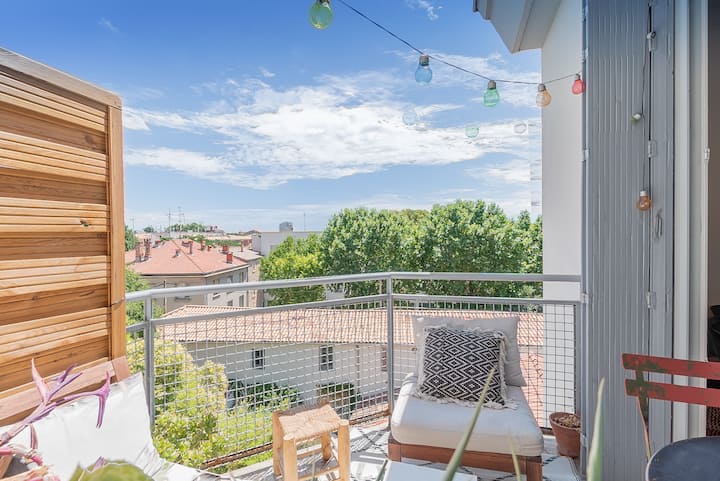 ห้องพักขนาดใหญ่แบบ 2 ห้องพร้อมระเบียงใจกลางเมือง