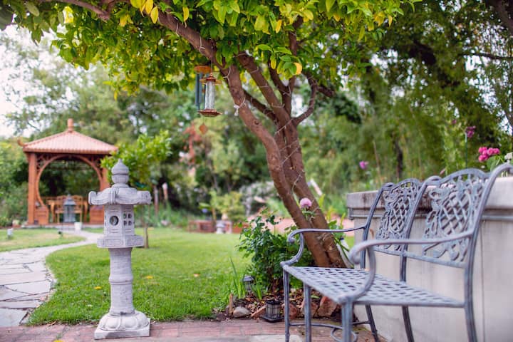 เราสร้างที่พักนี้โดยคำนึงถึงความงาม ความสงบ และธรรมชาติ ภาพวาดและภาพวาดต้นไม้ขนาดใหญ่ที่สวยงามทั่วทั้งพื้นที่ประดับประดาด้วยการแสดงออกทางศิลปะและความคิดสร้างสรรค์ โลกของธรรมชาติที่มีดอกไม้ต้นเรดวูดต้นไม้ผลไม้นกจำนวนมาก/สัตว์ป่ารอคุณอยู่จากวิวห้องนั่งเล่นเมื่อคุณก้าวเข้าสู่ลานบ้านและสวนจากประตูฝรั่งเศส ตื่นขึ้นมาฟังเสียงนกร้องทักทายวันใหม่ จิบกาแฟบาริสต้าหรือลาเต้ริมดอกกุหลาบในชนบท เดินเล่นหรืออ่านหนังสือในสวนที่เงียบสงบและเต็มไปด้วยแสงแดด หรือดื่มชา + สนทนาสนุกๆ ในเจดีย์ที่สวยงาม - เราสามารถคิดสิ่งสนุกๆ ให้คุณทำได้ ล้อมรอบด้วยต้นไม้ไม้แดงขนาดยักษ์/อุทยานแห่งชาติ/ลำห้วยมีประชากรนกขนาดใหญ่อาศัยอยู่ใกล้ๆห่างจากทางเข้าด้านหลังของสวนไม้แดงและเส้นทางเดินป่า 3 ช่วงตึกซึ่งเป็นสวรรค์สำหรับทั้งมนุษย์และสุนัข ย่านนี้หรูหราและเก๋ไก๋เดินเล่นรอบๆย่านนี้ชื่นชมสถาปัตยกรรมที่สวยงามสนามหน้าบ้านและสวนสนุกเสมอ! ขับรถ 10 นาทีไปยังตัวเมืองโอ๊คแลนด์ห่างจากสะพานเบย์ 6 ไมล์หรือ 20 -30 นาทีไปยังซานฟรานซิสโก