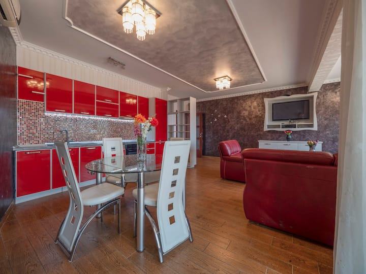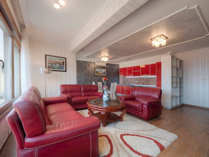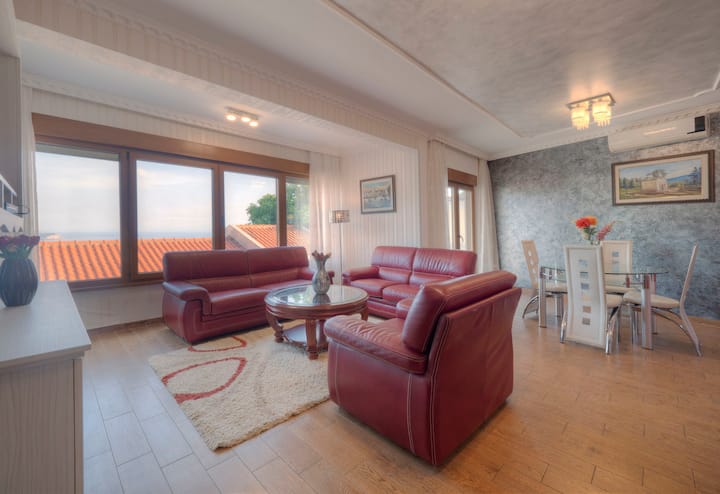 อพาร์ทเมนท์ที่สะดวกสบายขนาด 100 ตารางเมตรเหมาะสำหรับครอบครัวที่มี 2 ห้องนอนมองเห็นทะเลและภูเขา