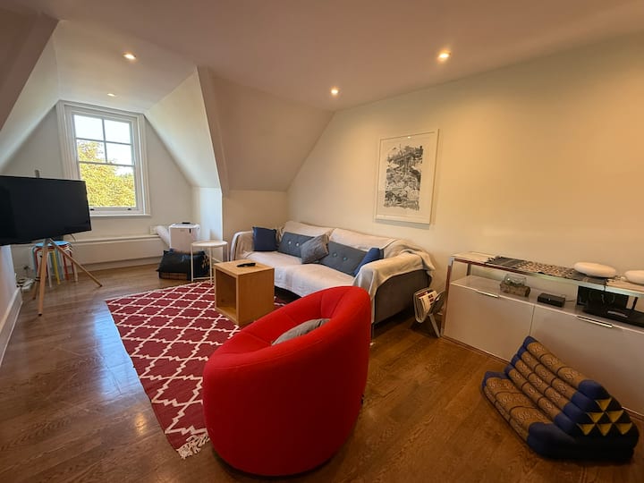 อพาร์ทเมนท์ชั้นบนสุดขนาดใหญ่ (110 ตร.ม.) ล้อมรอบด้วยต้นไม้และพื้นที่โล่ง เป็นฐานที่สมบูรณ์แบบในการสำรวจเมืองลอนดอน เข้าร่วมกิจกรรมกีฬา เช่น วิมเบิลดันและการแข่งเรือ หรือแค่ไปเยี่ยมครอบครัวและเพื่อน สวนสาธารณะและเส้นทางเดินป่ามากมายจะทำให้นักวิ่งและนักเดินมีความสุข โดยเฉพาะอย่างยิ่งริมแม่น้ำและในริชมอนด์พาร์ค พื้นที่นั่งเล่นแบบเปิดโล่งมีวิวพระอาทิตย์ตก Wi-Fi ความเร็วสูง และโต๊ะทำงานพร้อมจอภาพจะช่วยให้คุณติดต่อกับสำนักงานได้