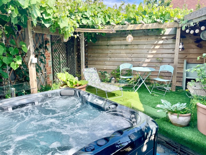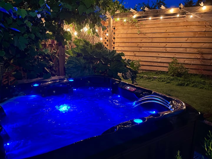 บ้านในหมู่บ้านที่สะดวกสบายพร้อมอ่างน้ำร้อนและพื้นที่ปิ้งย่างบาร์บีคิว