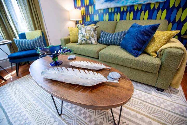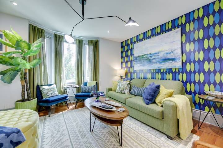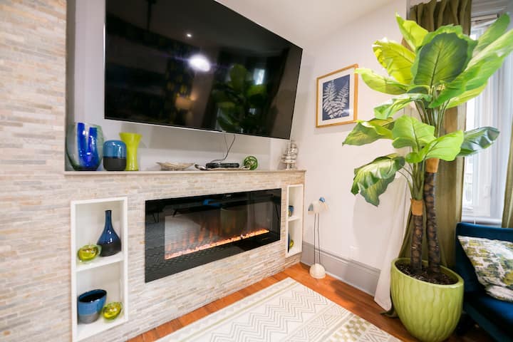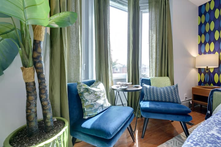 ยินดีต้อนรับสู่โทรอนโต! ผ่อนคลายหน้าเตาผิงหินควอตซ์หรือนั่งชิลบนเก้าอี้พักผ่อนบนดาดฟ้าของห้องสวีท 3 หลังสไตล์ MOD ขนาด 1.5 ห้องน้ำ 1,200 ตารางฟุต (111 ตารางเมตร) บนชั้นบนของบ้านสไตล์วิคตอเรียที่ได้รับการปรับปรุงใหม่ ห่างจากถนนบลูร์ออสซิงตันวิลเลจและลิตเติ้ลอิตาลีเพียงไม่กี่ก้าวห้องสวีทที่ตกแต่งอย่างประณีตและมีห้องครัวเชฟที่มีอุปกรณ์ครบครันและห้องทำงานแยกต่างหาก/3 ห้องนอนเหมาะสำหรับมืออาชีพเพื่อนร่วมงานและครอบครัว สัมผัสความสุขแห่งสีสัน!
