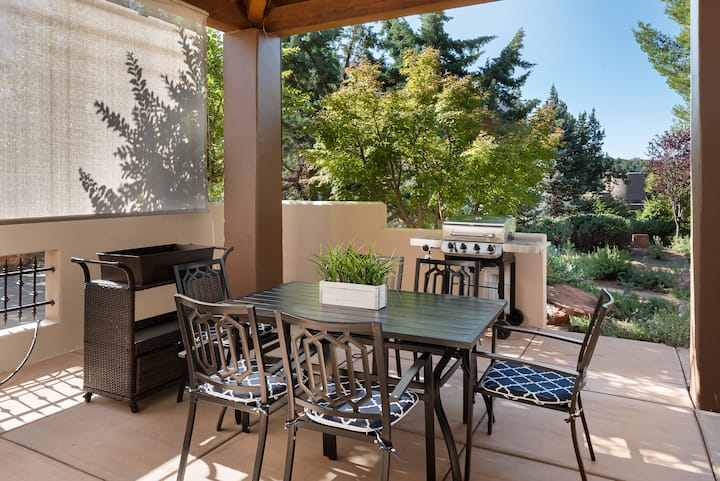 ด้านนอกมีอ่างน้ำร้อนส่วนตัวสำหรับการพักผ่อนใต้แสงดาวพร้อมเตาย่างบาร์บีคิวและพื้นที่รับประทานอาหารกลางแจ้งที่รองรับได้ 6 คน พื้นที่นั่งเล่นที่สะดวกสบายหันหน้าไปทาง Red Rocks ที่สวยงามซึ่งเป็นจุดที่สมบูรณ์แบบสำหรับการเพลิดเพลินกับความงามตามธรรมชาติและความเงียบสงบของพื้นที่ ไม่ว่าคุณจะทำอาหารเพลิดเพลินกับการแช่ตัวในอ่างน้ำร้อนหรือเพียงแค่นั่งพักผ่อนข้างนอกที่พักแห่งนี้มีพื้นที่เงียบสงบเพื่อผ่อนคลายและเพลิดเพลินกับความงามของเซโดนา