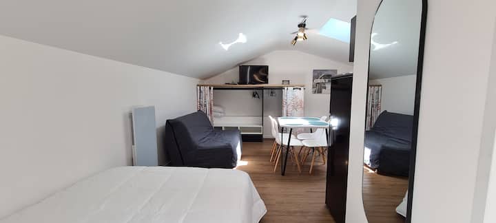 สตูดิโอสำหรับ 4 คน มีเครื่องปรับอากาศ ตั้งอยู่ใจกลางเมือง มีอุปกรณ์ครบครัน