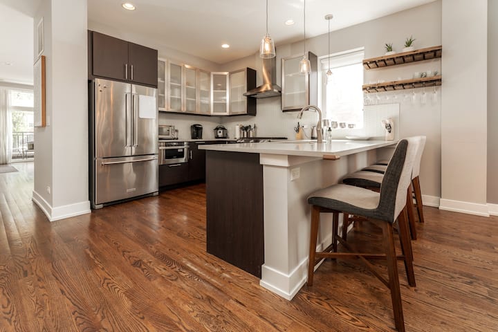 ที่พักสไตล์โมเดิร์นขนาดใหญ่ 4 ห้องนอน/2.5 ห้องน้ำ - โลแกนสแควร์ชิคาโก!