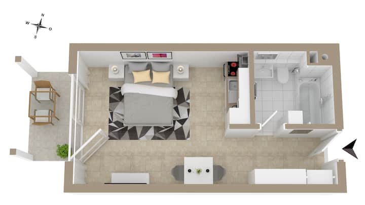 อพาร์ทเมนท์ + ระเบียงใกล้กับออดี้/ใจกลางเมือง/เวสต์พาร์ค W05