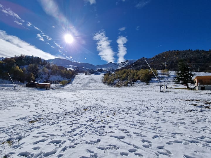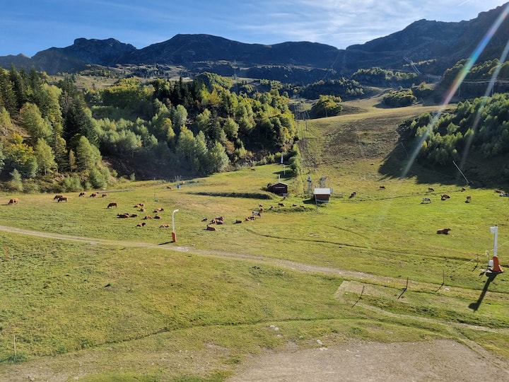 อพาร์ทเมนท์ที่ยอดเยี่ยมที่มีแสงแด้วยวิวสนามสกี