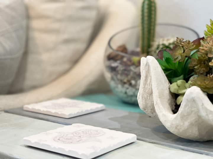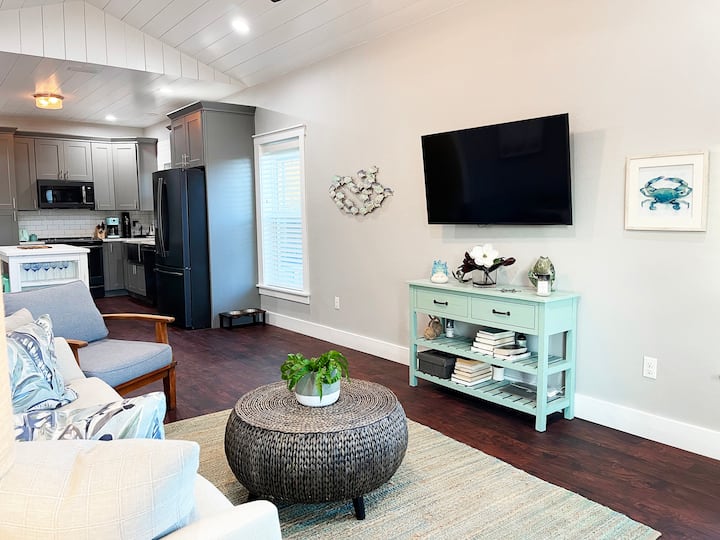 คอทเทจ 2 ห้องนอนสดใสห่างจากชายหาด 3 ช่วงตึก