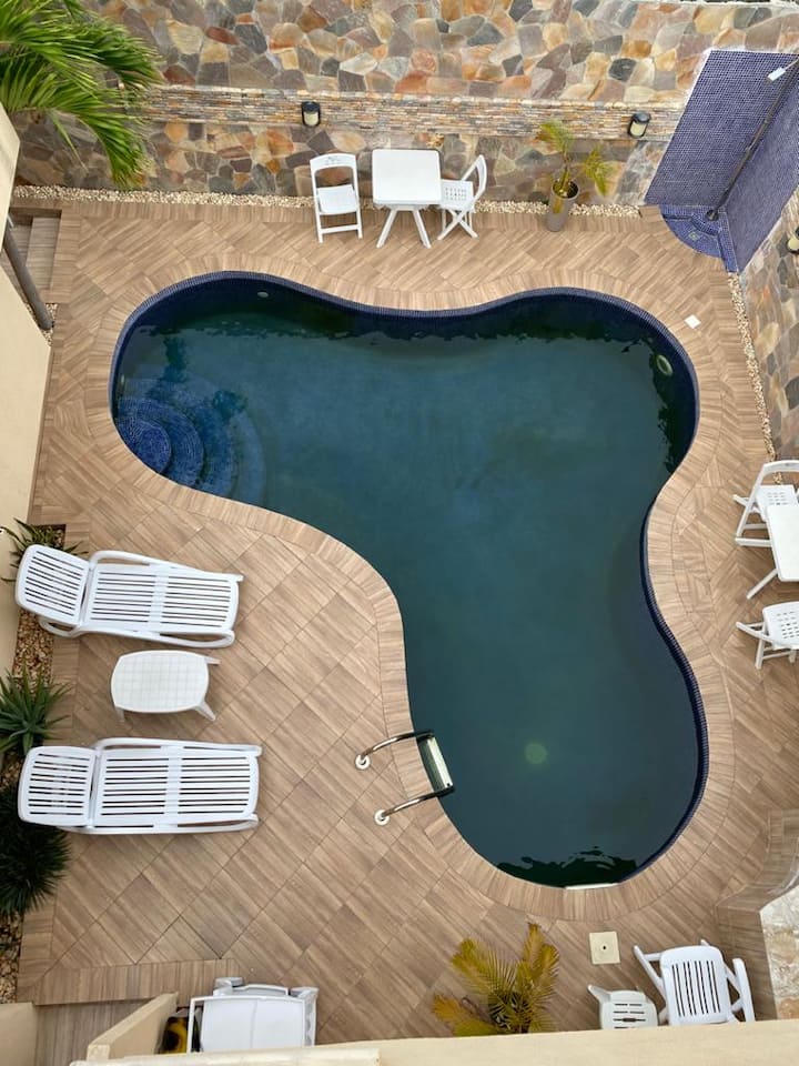 นี่เป็นหนึ่งในที่พักไม่กี่แห่งของย่านนี้ที่มีสระว่ายน้ำ