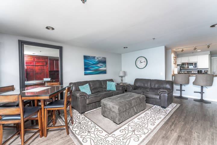 เพลิดเพลินกับเตียงควีนไซส์ในห้องนอนส่วนตัวอ่างอาบน้ำเต็มรูปแบบครัวเต็มรูปแบบพร้อมบาร์อาหารเช้าการรับประทานอาหารในร่มและกลางแจ้งและโซฟาเบดควีนไซส์และเตียงเมอร์ฟี่ในห้องนั่งเล่นที่กว้างขวาง