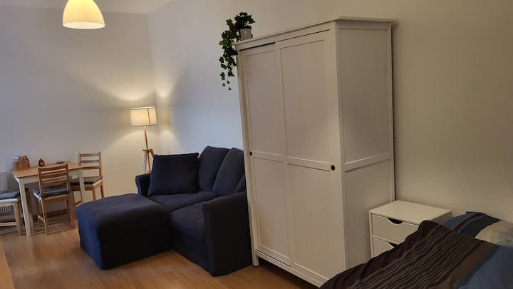 อพาร์ทเมนท์สวยในฟรีดริชไฮน์ 1 ห้องนอนพร้อมระเบียง