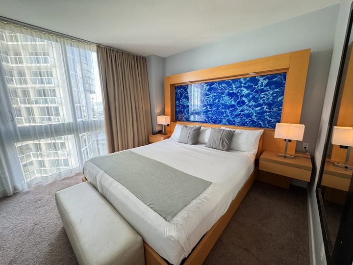 อพาร์ทเมนท์ 1 ห้องนอนมาเรนาสรีสอร์ทเป็นคอนโดหรูริมชายหาดพร้อมที่พักที่มีระเบียงทั้งหมดในซันนี่ไอส์บีชและวิวที่น่าทึ่ง